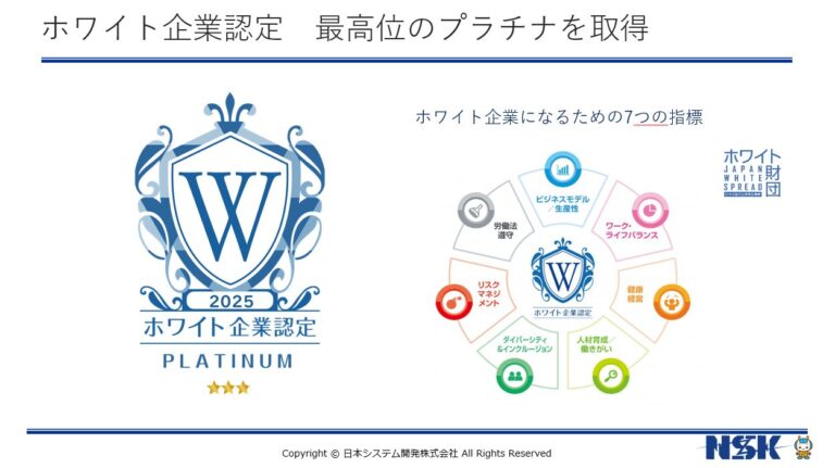 ホワイト企業認定PLATINUMの認定をいただきました。
